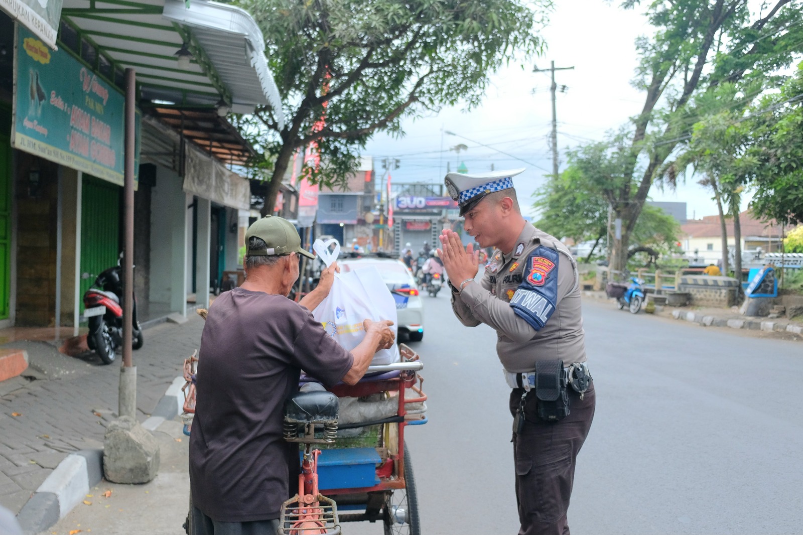 Sebanyak 125 paket sembako disalurkan kepada tukang becak, pemulung, pengemudi ojek online (ojol), dan warga yang membutuhkan. Paket berisi kebutuhan pokok itu langsung dibagikan personel Satlantas ke titik-titik keramaian.