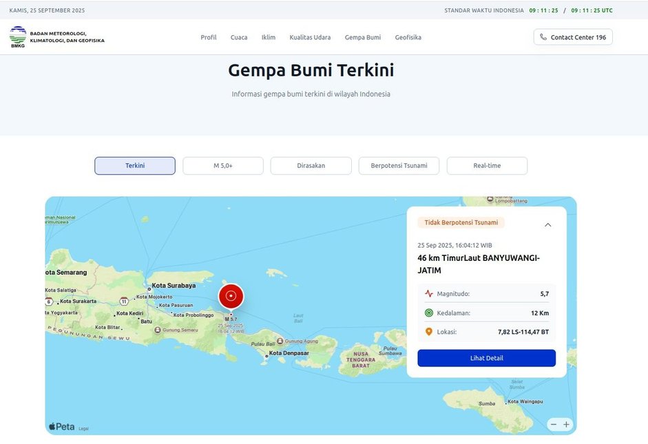 Sidoarjo, Gardu.id – Gempa bumi dengan magnitudo 5,7 yang terjadi Kamis (25/9/25) sore sekira pukul 16.04 WIB, getarannya terasa hingga wilayah Kabupaten Sidoarjo, Provinsi Jawa Timur. Sejumlah warga di Perumahan Gading Fajar di Desa Siwalanpanji, Kecamatan Buduran, Kab. Sidoarjo, nampak keluar rumah saat tanah di sekitar wilayah itu terasa bergoyang.