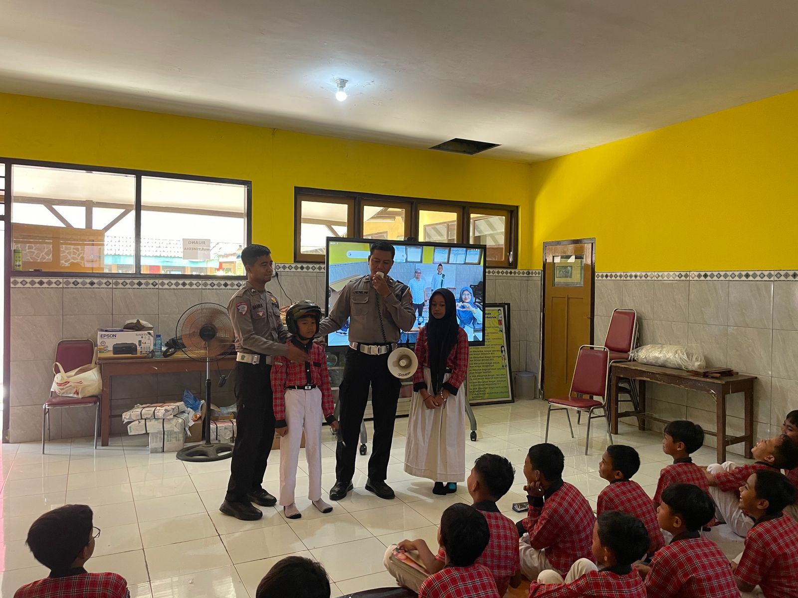 Dalam kegiatan tersebut, petugas memberikan pembelajaran interaktif kepada para siswa mengenai arti rambu-rambu lalu lintas, faktor penyebab kecelakaan, serta etika berkendara di jalan raya.