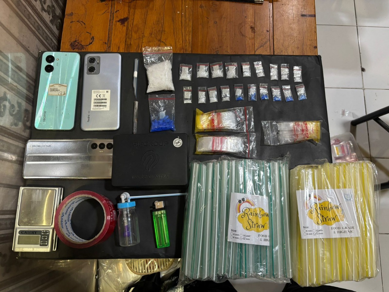 Selain sabu seberat 39,5 gram, polisi juga menyita alat hisap, timbangan digital, lakban merah, plastik klip, dan tiga unit ponsel yang diduga digunakan untuk transaksi narkoba.